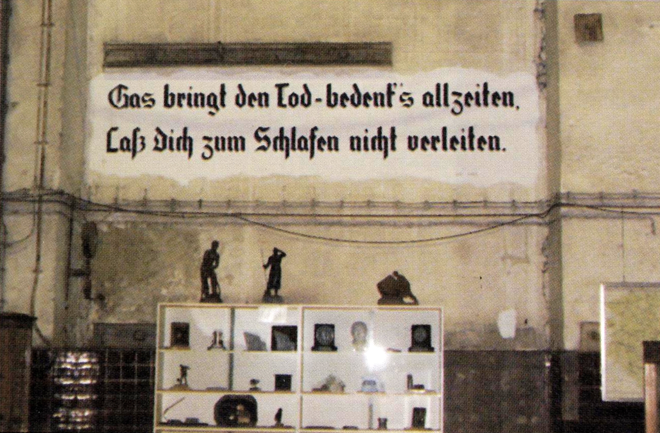 Старовинним німецьким письмом: "Це приносить смерть - пам'ятай про це завжди. Не піддавайся спокусі заснути".