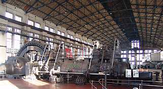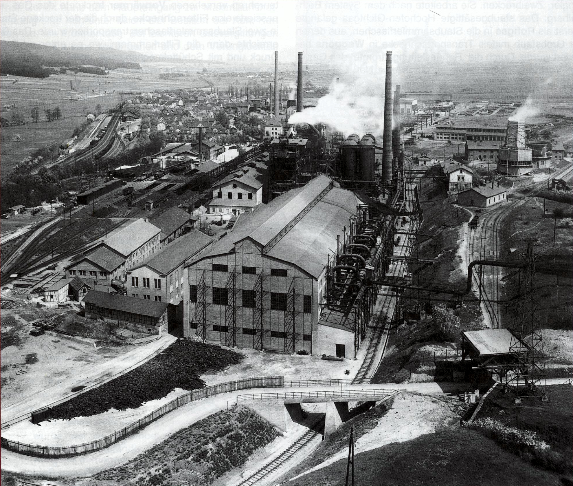 PLG_GSPEECH_SPEECH_BLOCK_TITLE Nachdem durch Bombenangriffe in den letzten Kriegstagen die Maxhütte total stillgelegt worden war, musste zur Versorgung der Industrie in der sowjetischen Besatzungszone mit Roheisen und Stahl die Produktion rasch wieder aufgenommen werden. Es existierten nur in der Maxhütte 4 Hochöfen zur Erzeugung von Roheisen. Am 04.02.1946 wurde mit einem alten Dampfkolben- gebläse der Hochofen 2 angeblasen. Mit der Inbetriebnahme des Gasbehälters und eines weiteren Hochofens normalisierte sich die Energielage für die Gasmaschinenzentrale. Die Halle wurde von 1948 - 1950 auf 121 m erweitert. In diesem Anbau fanden 4 Hochofen-Turbogebläse und eine 1 MW- Kondensationsturbine Platz. Dazu gehörte der Kühlturm West. Am 27. November 1950 kam es zu einer Havarie in der Gasmaschinenzentrale. Die 48 t schwe- re Kurbelwelle der Gasdynamomaschine 2 brach an ihrer Sollbruchstelle auseinander. Eine Ersatzkurbelwelle war nicht vorhanden. Die DEMAG Duisburg konnte kurzfristig keine neue Kurbelwelle liefern. Mitarbeitern derGasmaschinenzentrale gelang es, aus 2 schadhaften Kurbelwellen eine Ersatzwelle herzustellen. Eine Leistung, die gebührend gewürdigt wurde. In den weiteren Jahren wurden die Maschinen und Anlagen für die energetischen Hilfsproduk- tionen Hochofenwind, Pressluft, Stahlwerkblaswind und Reingaserzeugung an die Erfordernisse der betrieblichen Verbraucher angepasst. Die Verschrottung ausgedienter und der Aufbau neuer moderner Anlagen war erforderlich. In den 50er und 60er Jahren wurden die MAN Gasgebläse 1 - 3 demontiert und die Hochofen- Turbogebläse 5 - 8 aufgebaut. Der höhere Winddruck und die größere Windmenge waren für eine Leistungssteigerung am Hochofen erforderlich. Zur Bedienung wurde eine neue Messwarte errichtet. Die Arbeitsbedingungen konnten wesentlich verbessert werden. Auch in der Windversorgung des Stahlwerkes kam es zu technischen Veränderungen. Nach den Stahlwerkturbogebläsen 1 und 2 in den Jahren 1951 und 1952 wurde 1968 das moderne Stahlwerkturbogebläse 3 in Betrieb genommen. Die Thyssen Gasgebläse 1 und 2 konnten anschließend verschrottet werden. Sie waren sehr störanfällig geworden und erfüllten nicht mehr die Erfordernisse eines modernen Glasbetriebes. Mit der Inbetriebnahme der bodenblasenden Sauerstoffkonverter im Jahre 1974 hatten auch die Turbogebläse 1 bis 3 ausgedient. Von den 7 Gasmaschinen waren nur noch die Gasdynamos 2 und 3 geblieben, die nur abwechselnd gefahren wurden. Da der Platz für Erweiterungsmaßnahmen nicht ausreichte, musste auch der Gasdynamo 2 verschrottet werden. Die Pressluftversorgung wurde systematisch mit neuen Maschinen auf den freien Fundamenten der demontierten Gasmaschinen konzentriert. Zu den Kompressoren 21 und 22 (noch TR- Reihe) gesellten sich 5 Winkelverdichter 2SL3K 250c. Ab 1986 wurden 2 Turboverdichter für das Feststoffkonverterverfahren für Kühlzwecke in Betrieb genommen. In den 80er Jahren entstand eine Umformeranlage zur Wärmeversorgung des neu errichteten Wohngebietes Saalfeld-Gorndorf, der die Hochofenturbogebläse 1 und 2 weichen mussten. 2 Bombentreffer und Bordwaffenbeschuß legen die Maxhütte am 9. April 1945 still. Hochofen II wurde 1946 als erster Hochofen in der gesamten Ostzone wieder angeblasen.